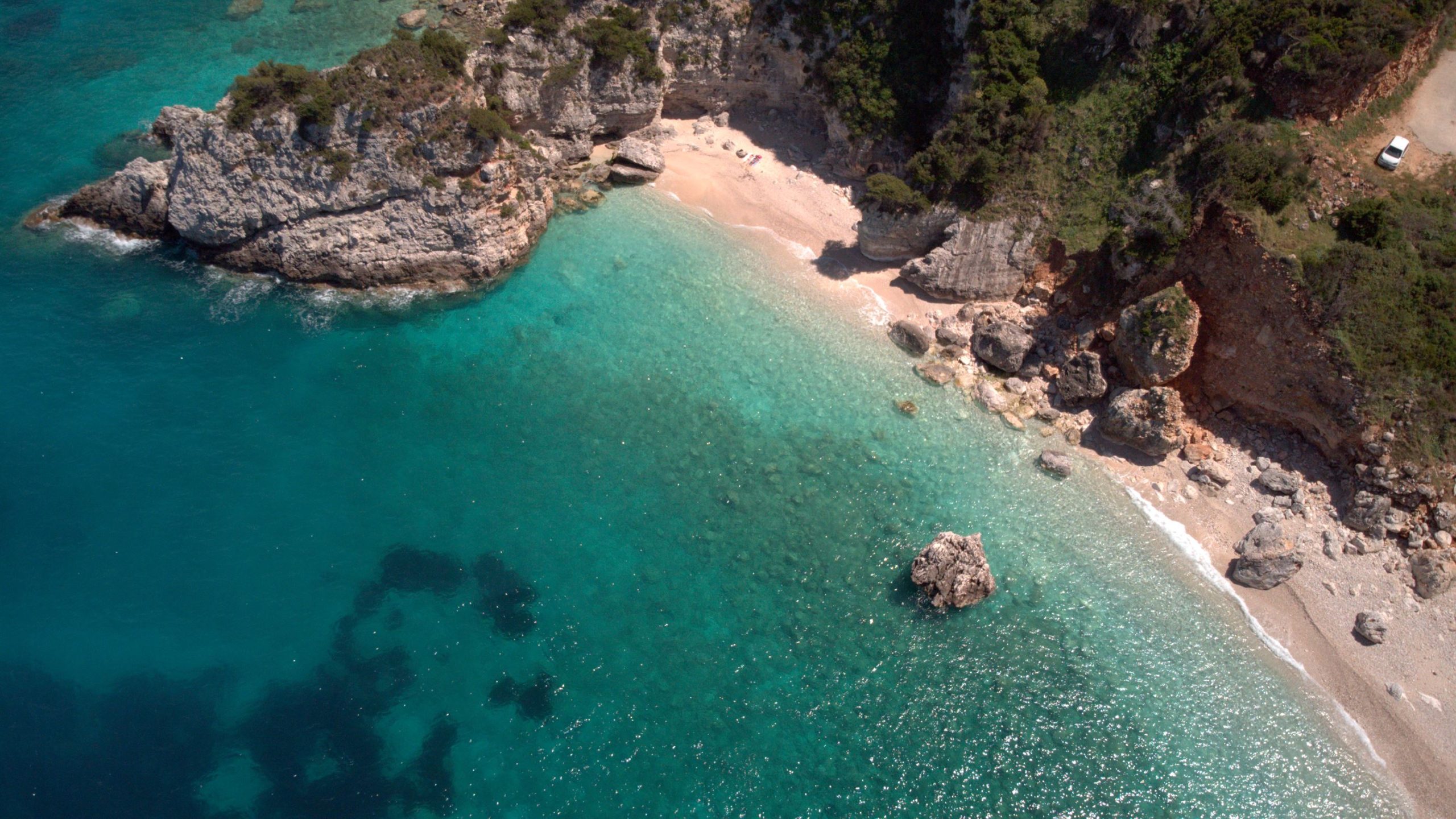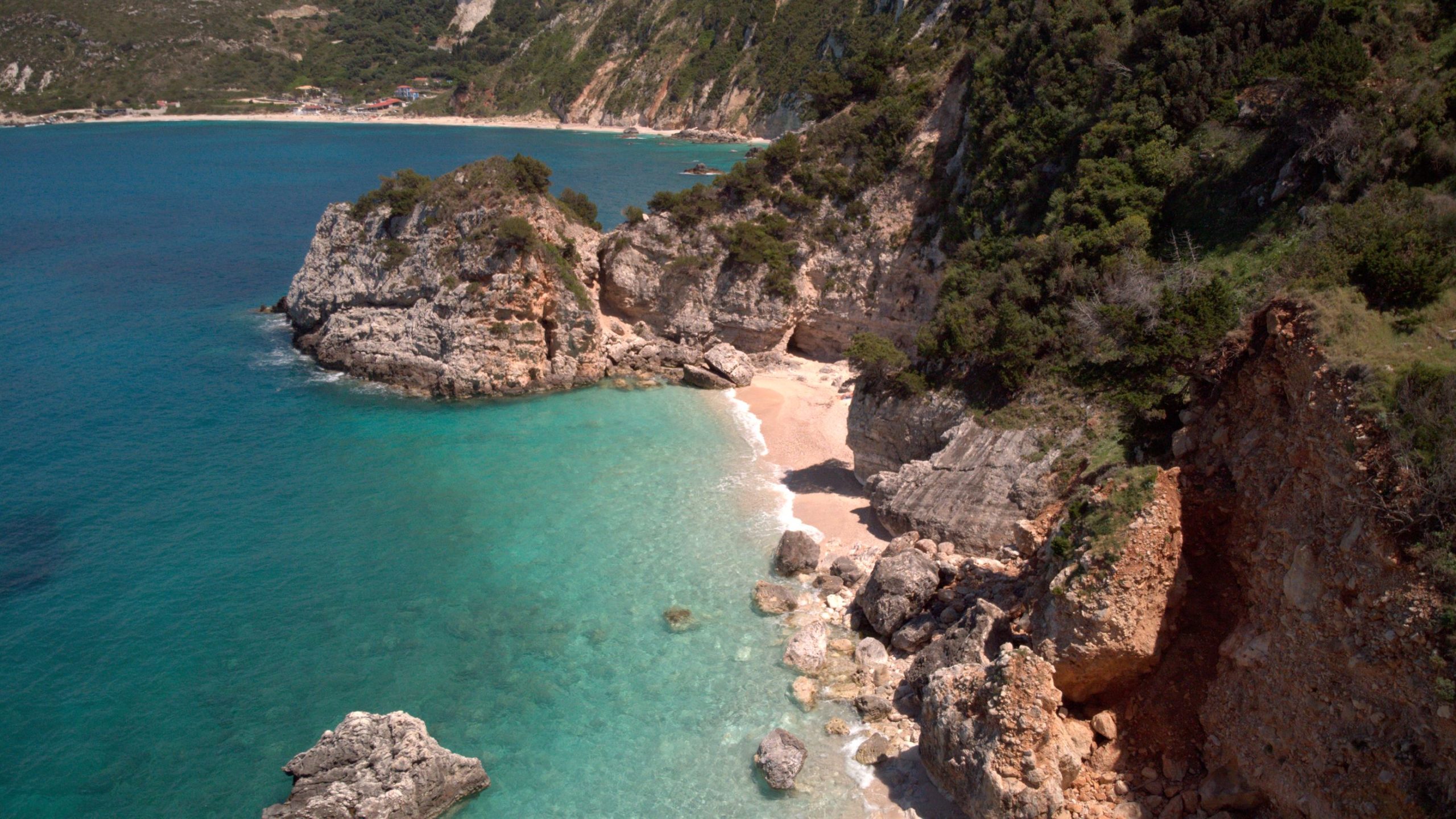 This small but beautiful beach is located on the Paliki Peninsula and is reached from the village of Damoulianata. Drive to the village, taking the main road to the north of the peninsula towards Petani beach. When you descend from the village pause to admire the stunning views, then carefully drive down to Agia Eleni (Saint Eleni) Beach.