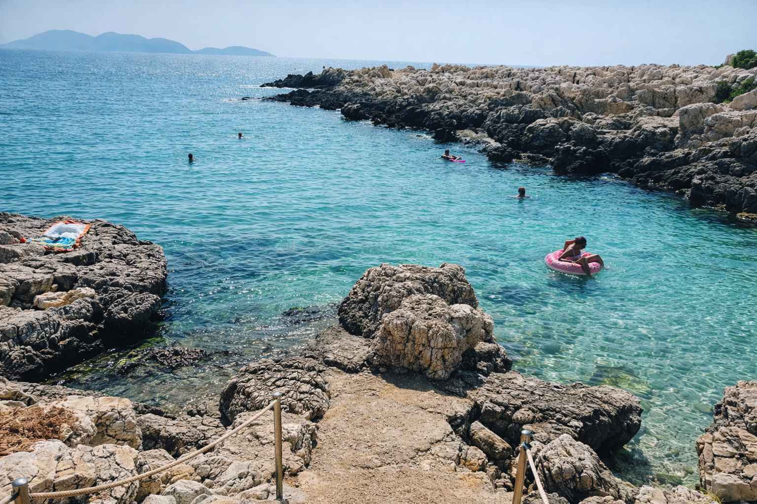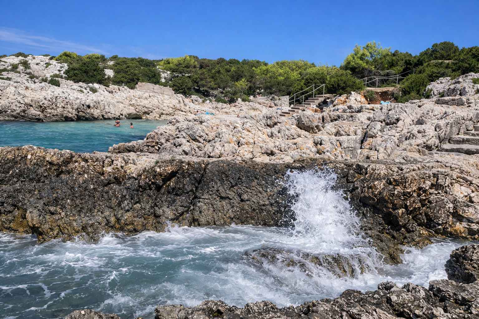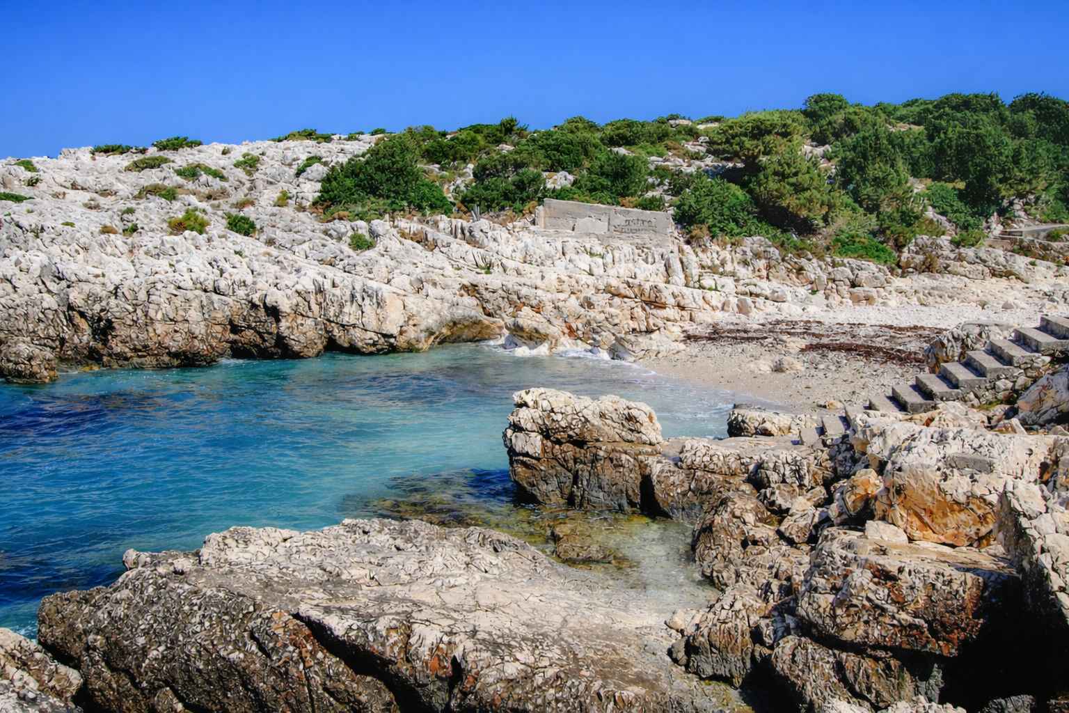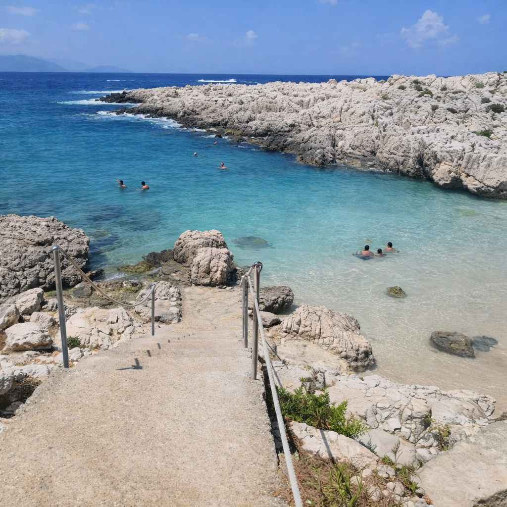 The coast is accessible by car, and some parking spaces are available. To reach the beach, visitors have to use the stone steps that have been created.