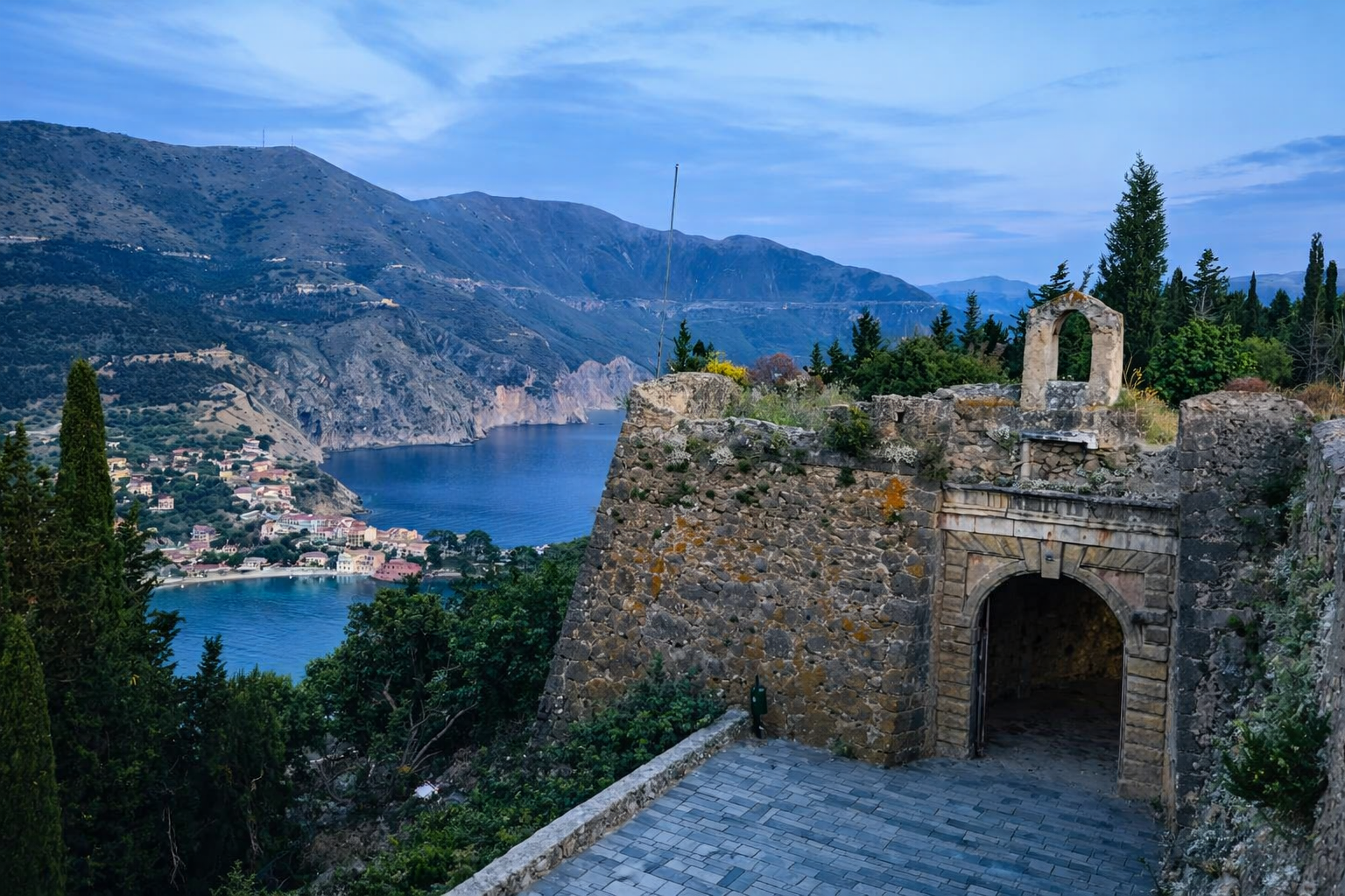 he Venetians constructed it in the 16th century on top of four bastions, with two more being added later. Its main purpose was to protect the island from invasions which were taking place frequently by the pirates and the Ottomans. It became the capital of Northern Kefalonia due to its strategic location. When the Venetians captured Lefkada from the Ottomans, it lost much of its usability as a defensive building, and Argostoli became the capital instead.