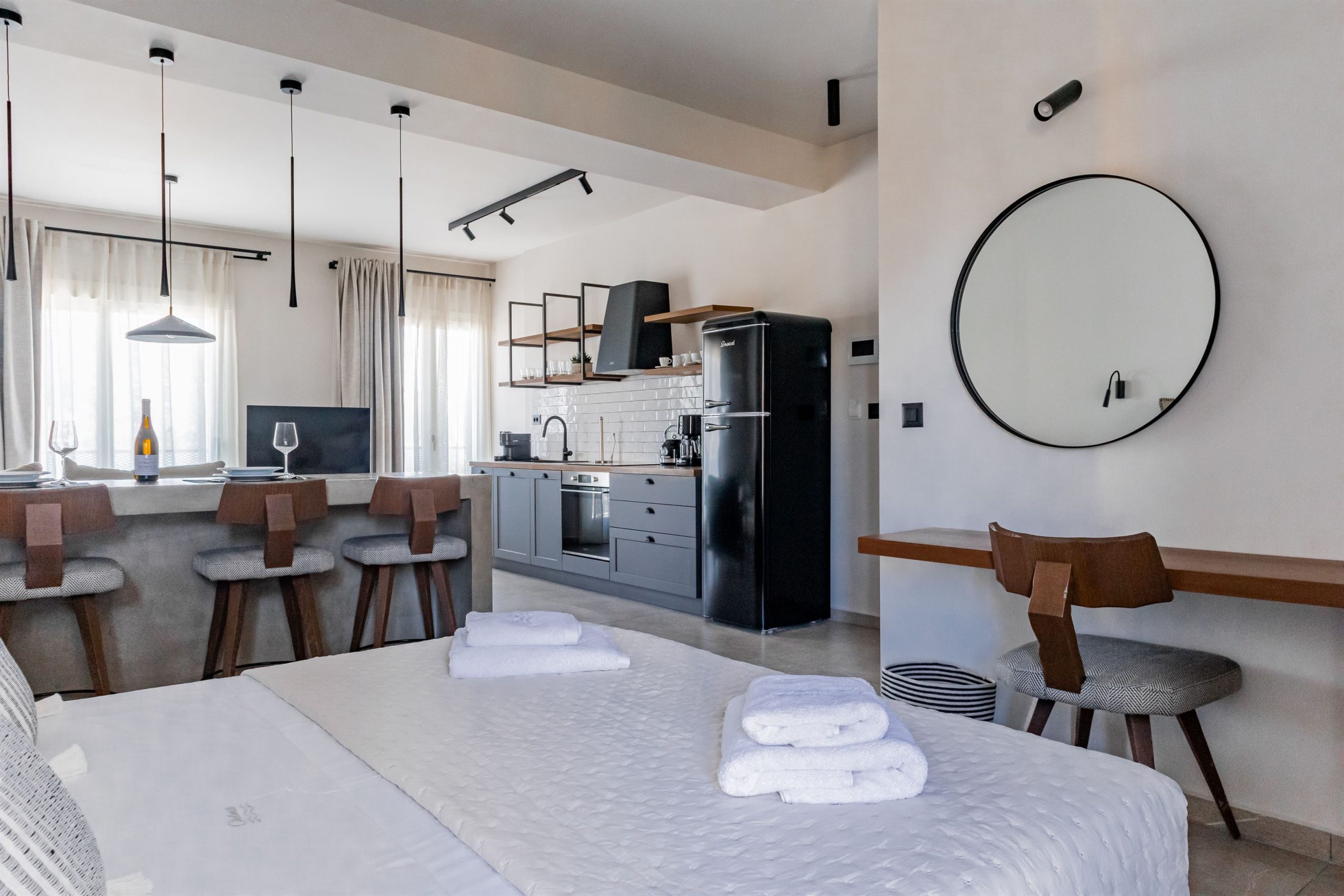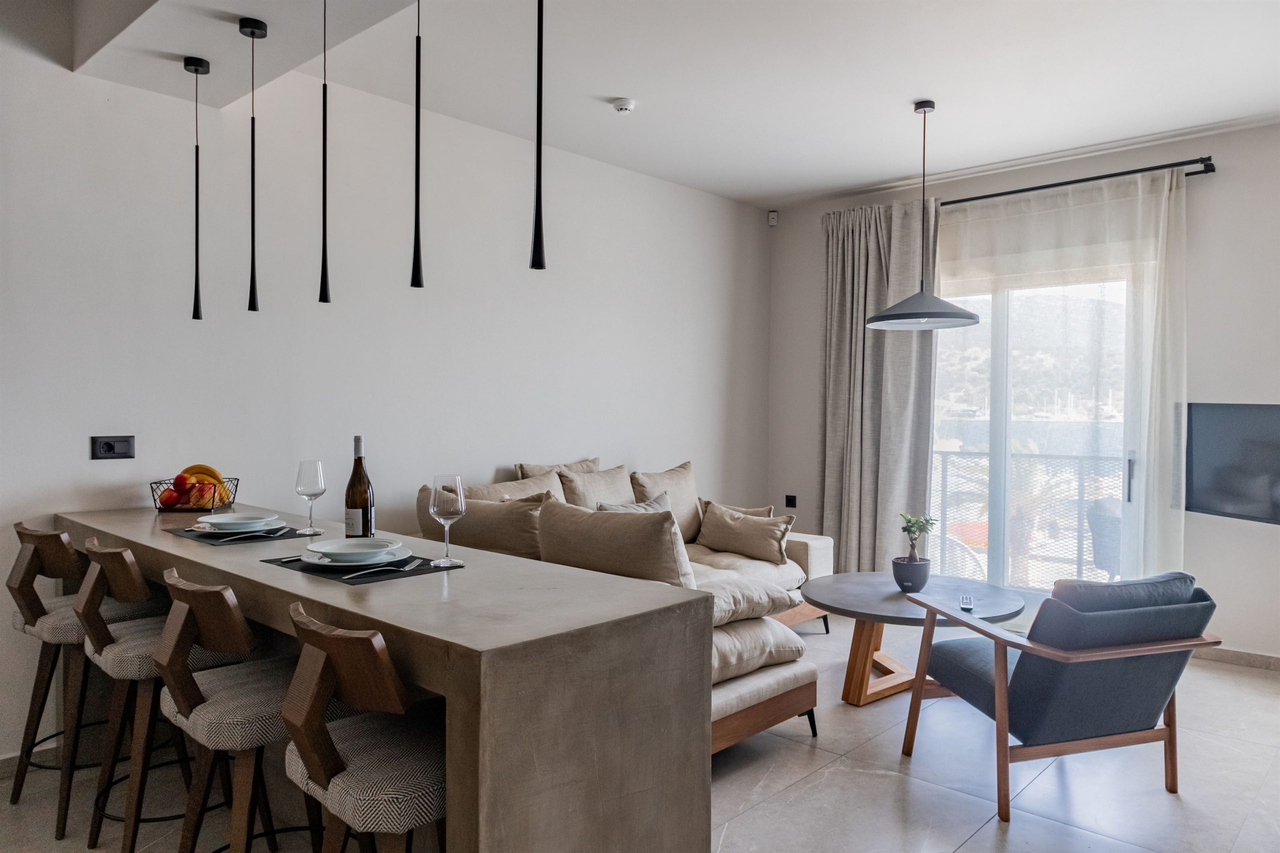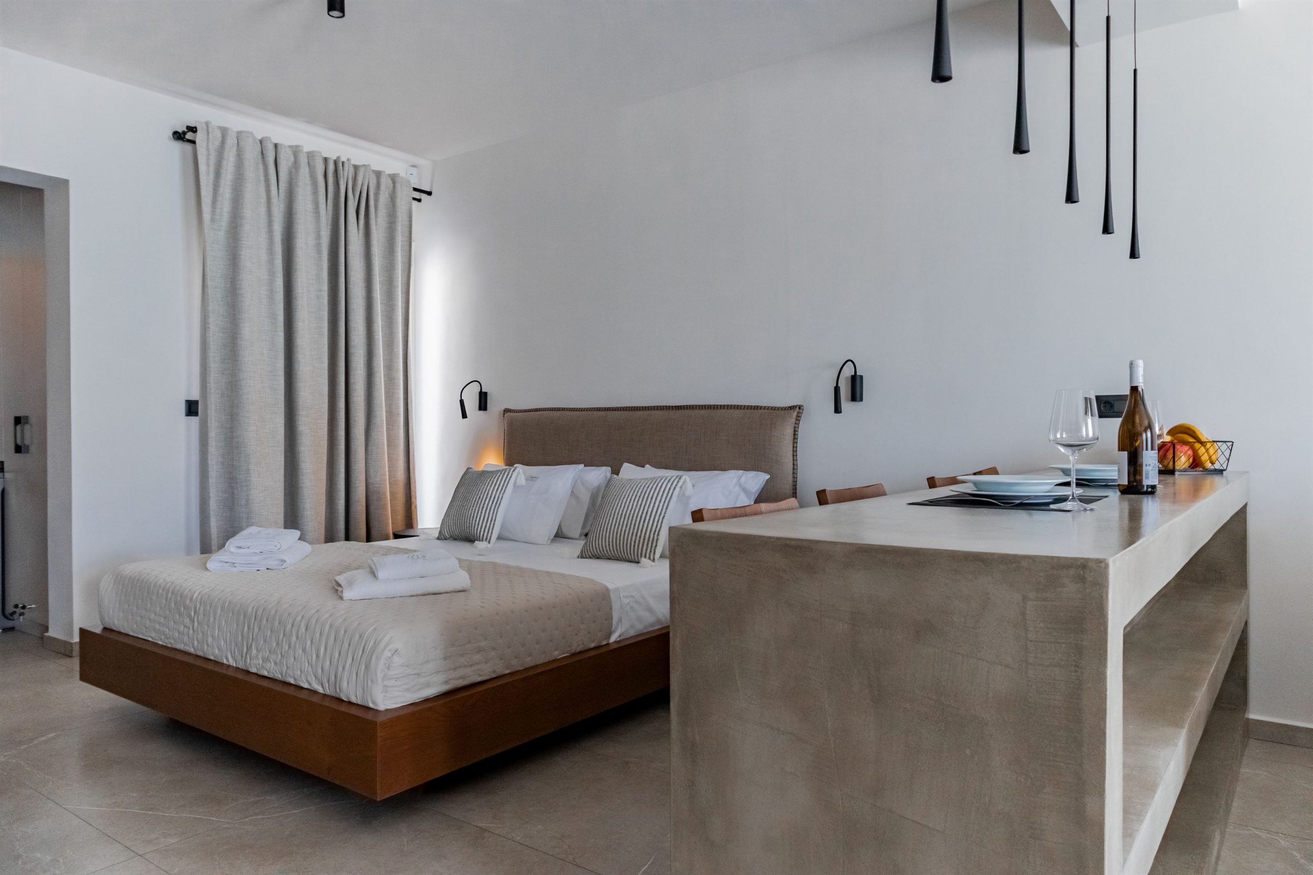 Chelmis Sea Front Apartments is a complex of two deluxe apartments, Atlantis & Oceanis, which seamlessly merge to create an unparalleled seaside retreat. Both meticulously designed by renowned local artist Maria De Rosario, these neighboring gems offer identical layouts and exquisite amenities.