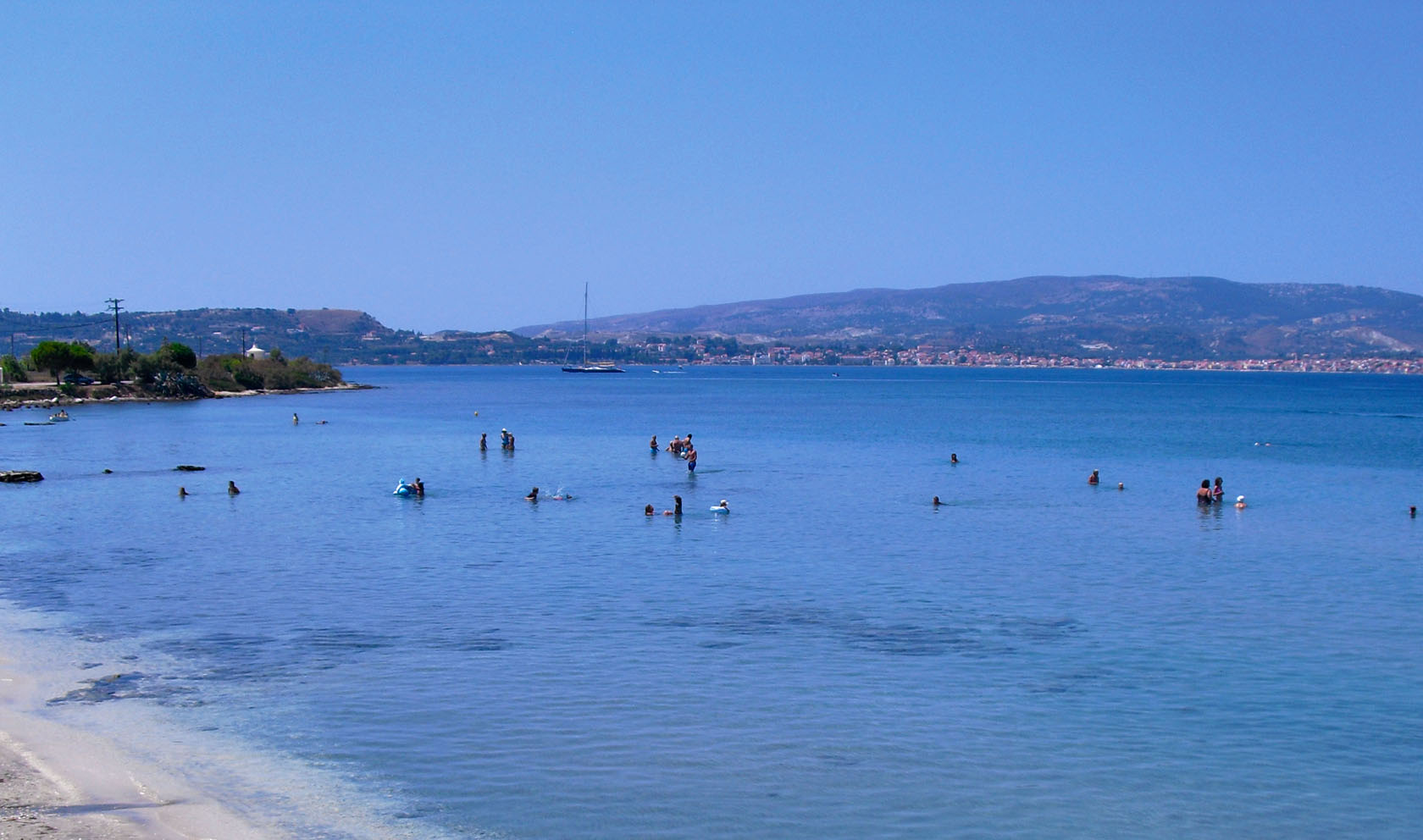 Shortly before reaching the Lantern of Agios Theodoros in Argostoli, one encounters a golden-sandy beach with shallow waters. A small, quiet sandy beach near Argostoli, with fine golden sand and warm shallow waters, suitable for children. The waters are always warm and are the ideal choice if you want to go for a quick swim, as it is located very close to Argostoli.