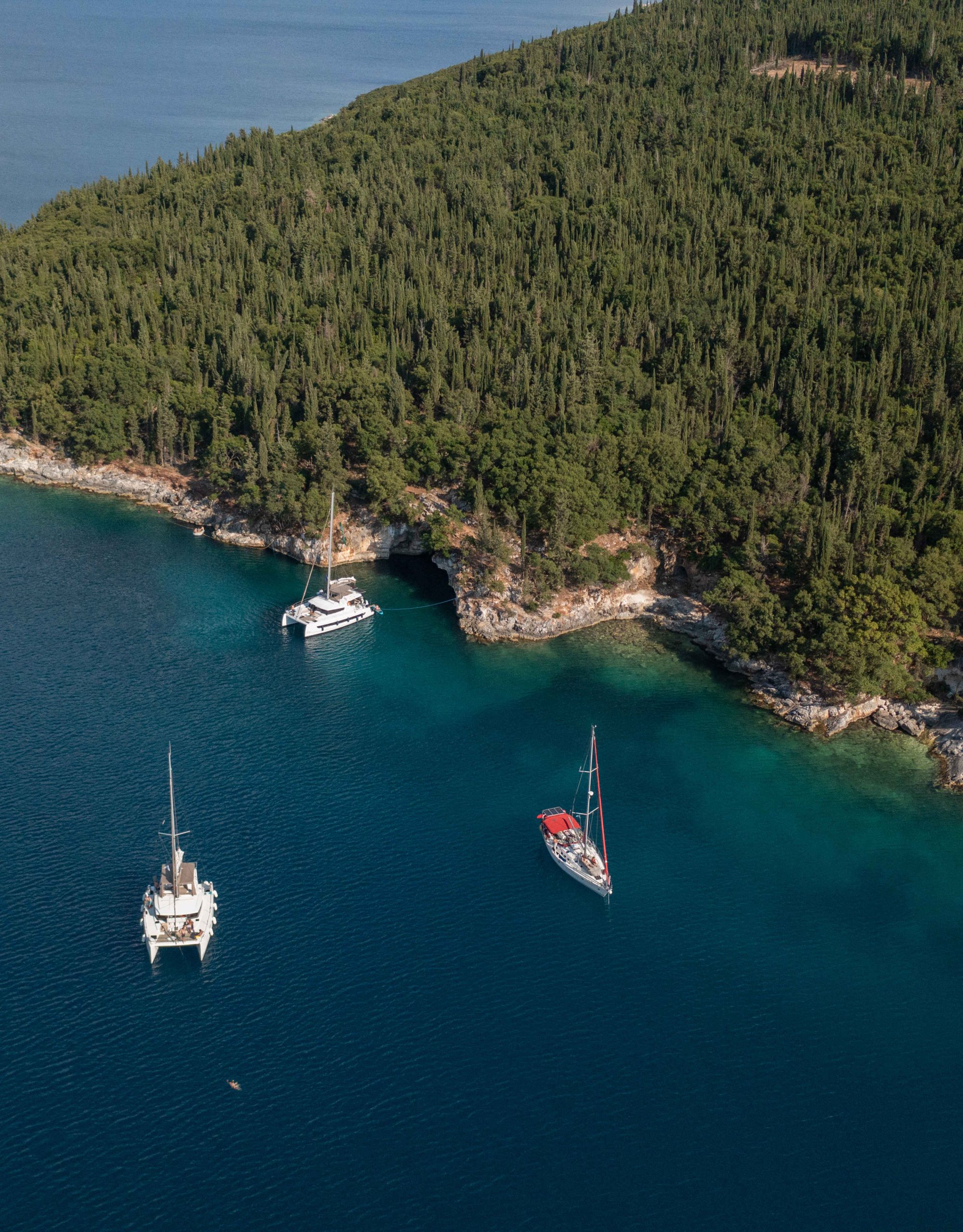 It’s an ideal location for families with young children as it’s isolated, calm and protected from wings and waves, but also its waters are quite shallow. Surrounded by lush vegetation, cypresses, pines and olive trees blend harmoniously with the white pebbles and the blue waters.