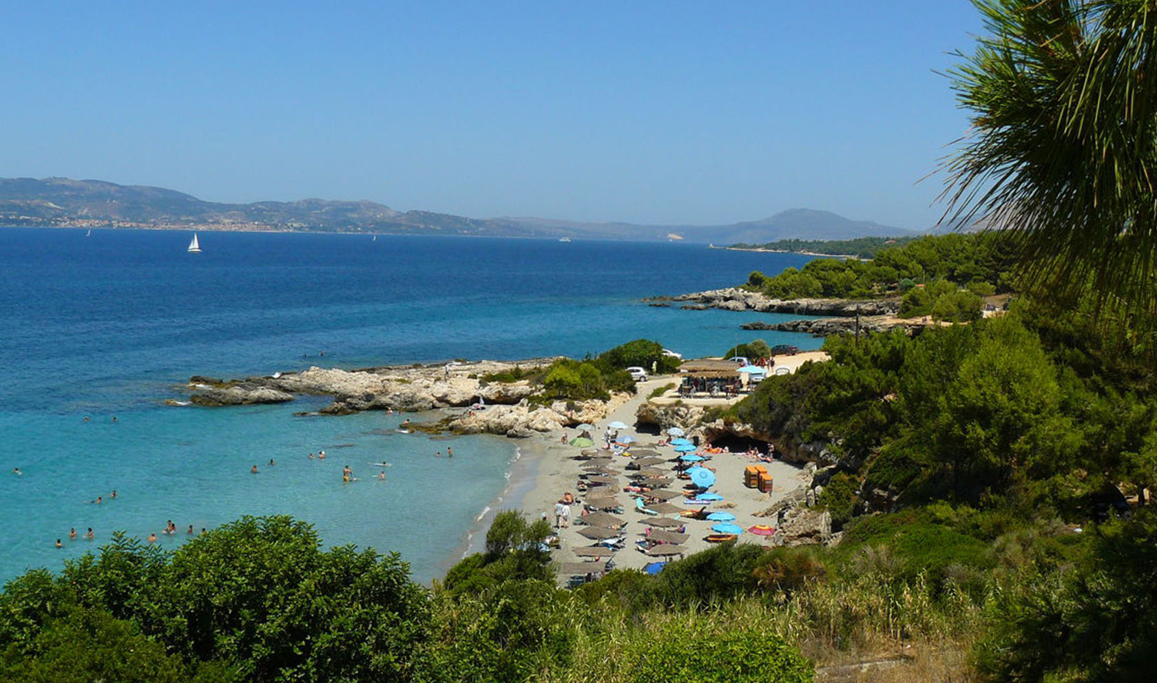 It is a semi-organized beach, hosting a plethora of sunbed pairs and parasols and a beach bar/canteen that provides snacks, drinks, and coffee in a shaded area. This shore is very easily approachable by car, making it ideal for a family visit! Furthermore, swimming in Gradakia will have you in awe as you enjoy the rich views of the Paliki Peninsula and the small Vardiani island.