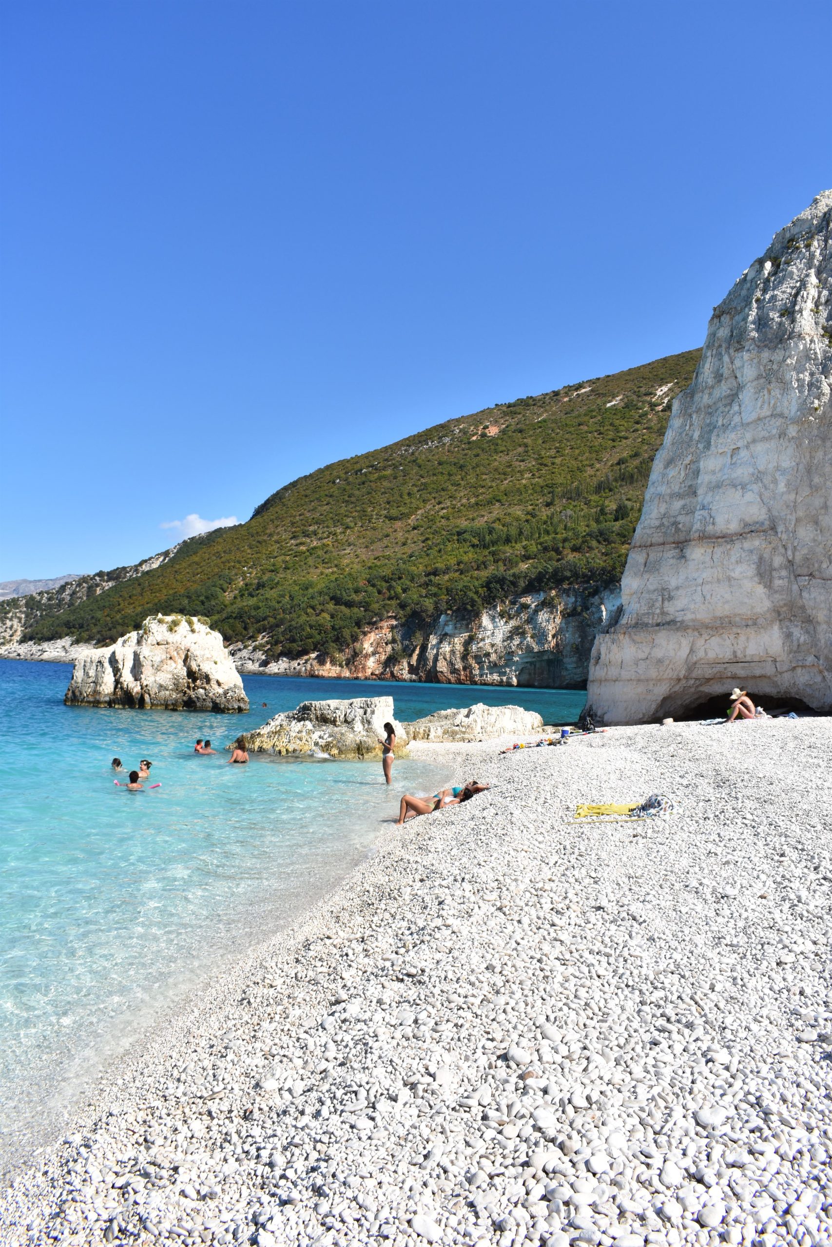 It is a tiny several bays coastline with crystal turquoise water and light fine pebble, so you don’t need special shoes. The sharpness of entering the water is quite normal. This beach is suitable for different categories of people, lonely travellers, relaxation getaway lovers, hikers etc. It is almost deserted place even during the high season. Moreover, this beach is popular with naturists.