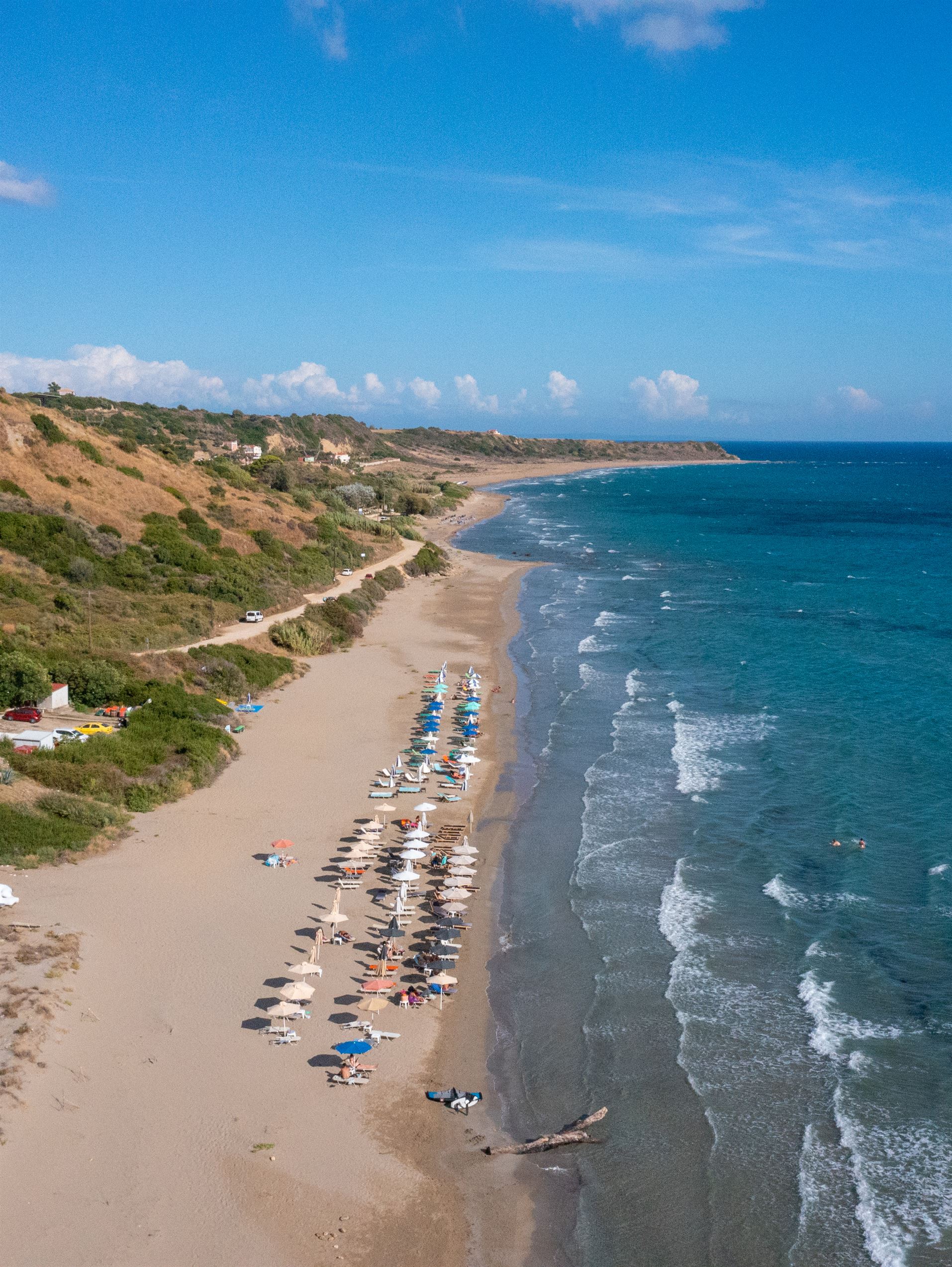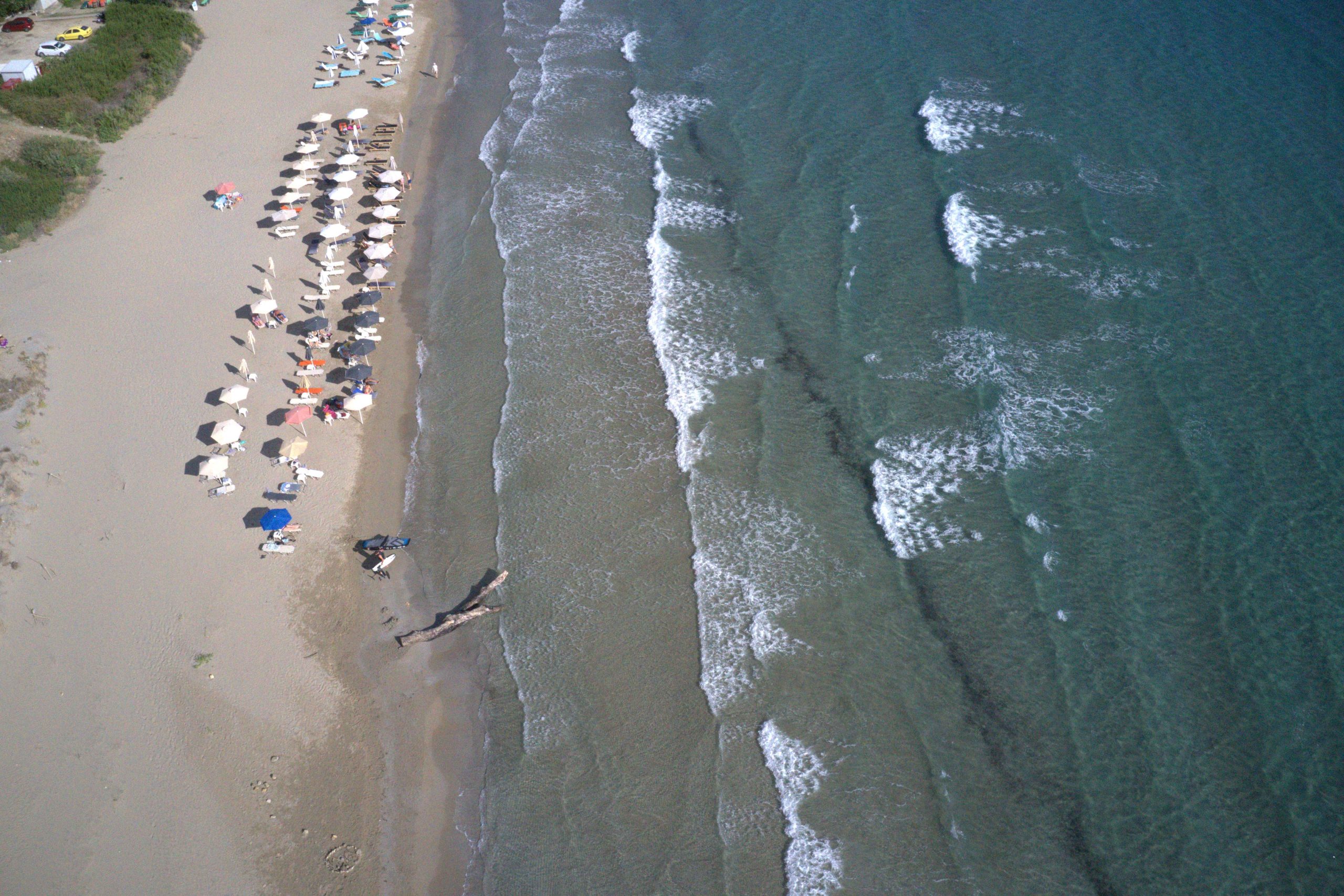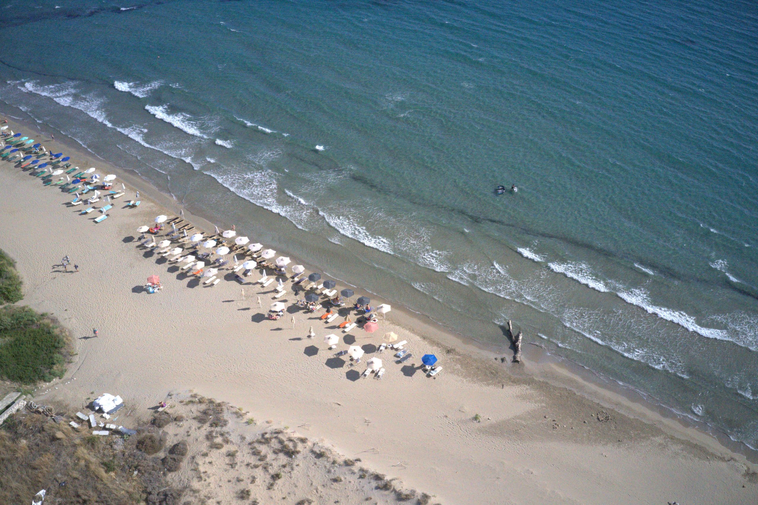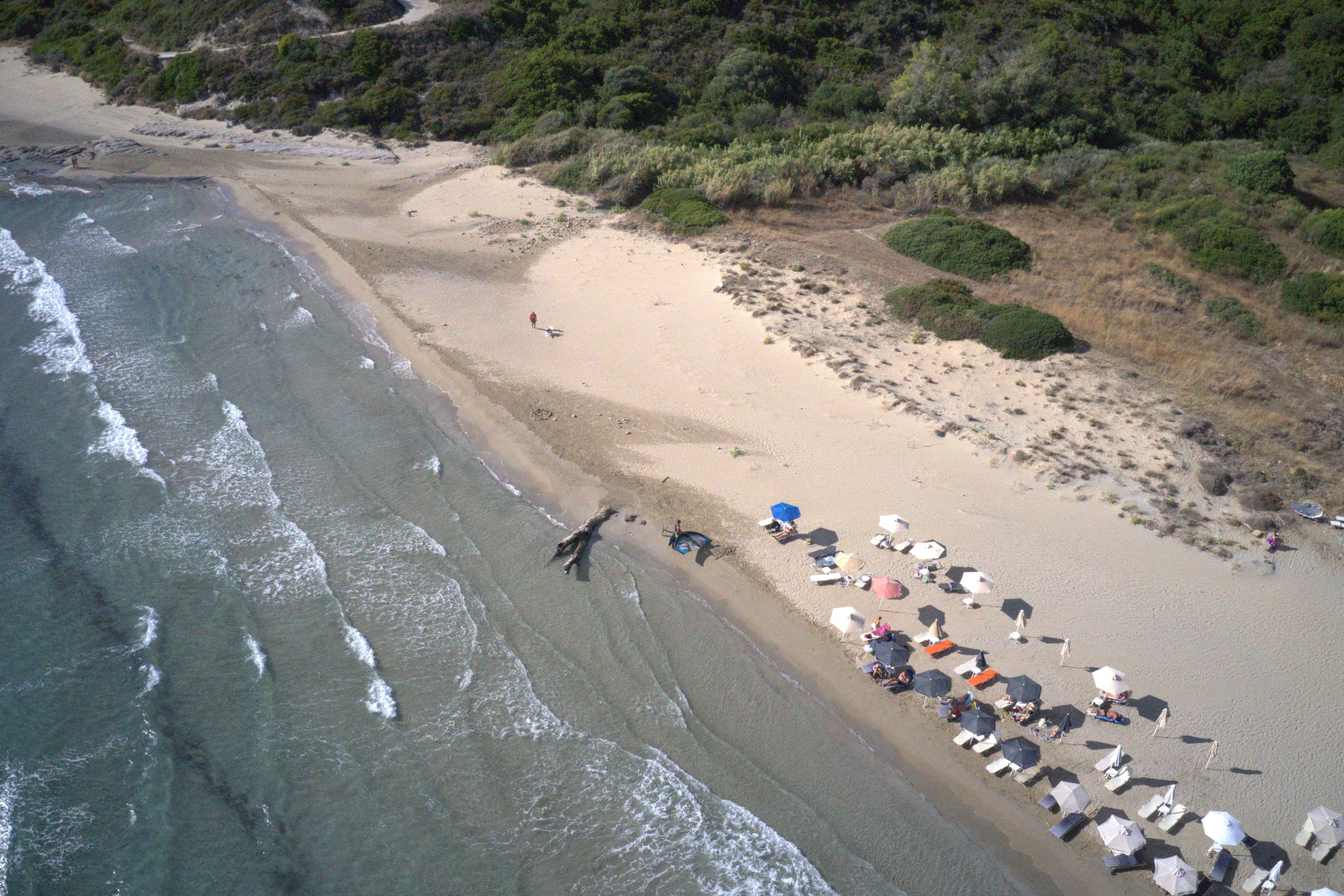 The beach got its name from the kilns which used to exist in the area, where roof tiles were made using a type of clay. You will reach the beach by turning right at the village Ratzakli and you can see it from above on the way to Skala. This particular beach has been chosen as a breeding ground by the endangered Caretta- Caretta sea turtle. Passing by the second Kamini, there is one more beach, Munda, which has yellow sand, is quiet and not so shallow. Many nudists prefer this beach.