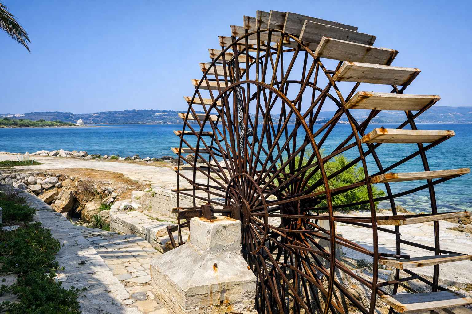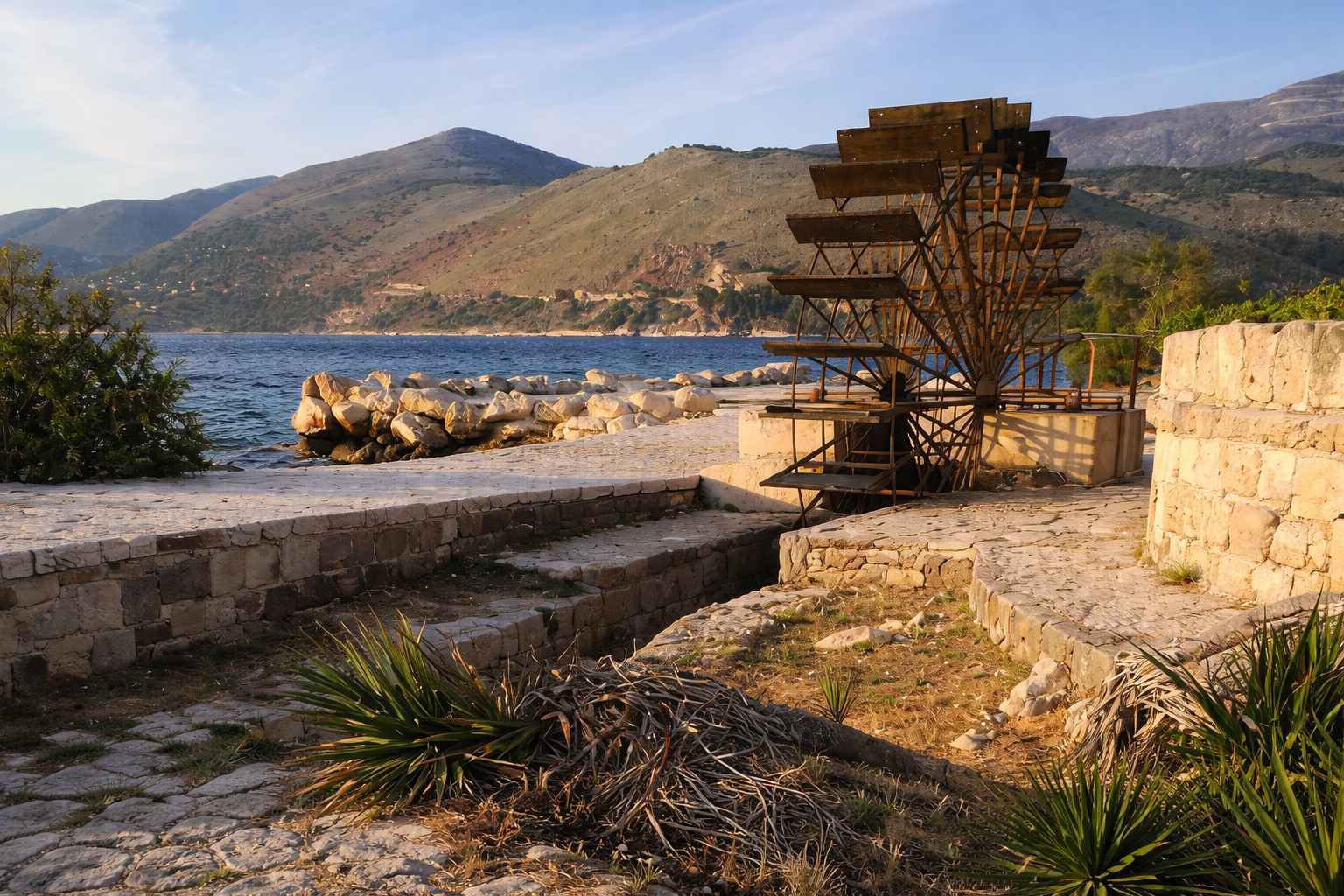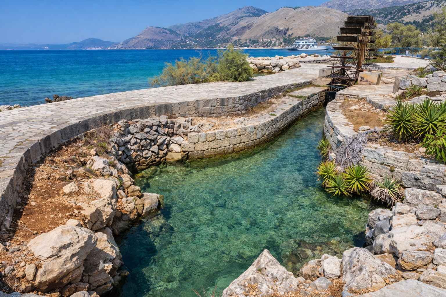 The watermills were destroyed during the seismic earthquake of 1953, whilst now only a singular water wheel is still in place, a replica of the ones that were demolished. Furthermore, feel free to enjoy your stop at Katavothres to marvel at the sight, take beautiful pictures, visit the nearby Fanari Beach, or relax with a coffee of your choice or a cocktail drink at the sight’s cafeteria!