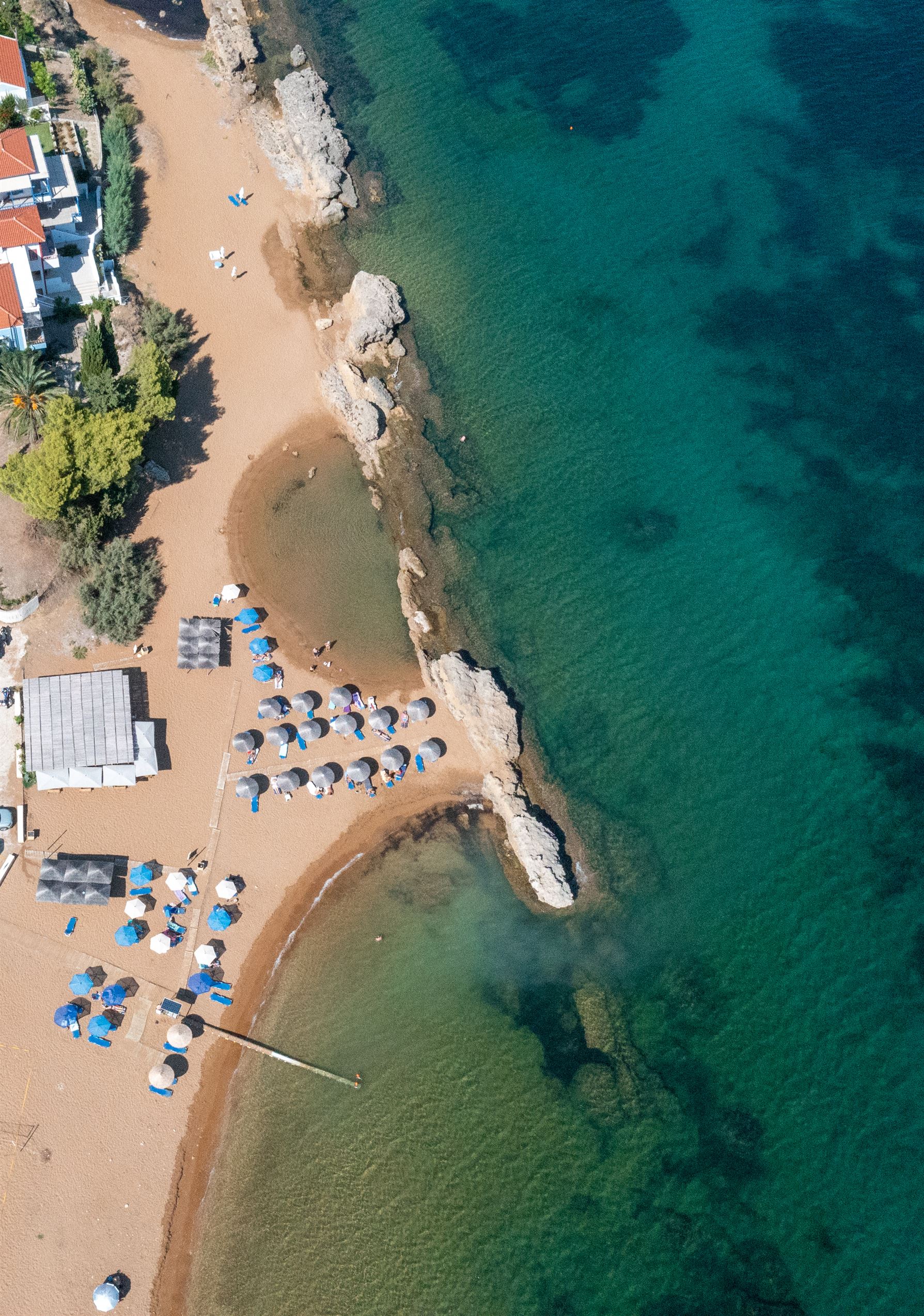Lepeda is semi-organized, offering limited sets of sunbeds and parasols to rent, as well as a canteen, ideal for a refreshment or a quick snack by the water. Furthermore, an outdoor WC is available, as well as a free-to-use volleyball court, where tournaments take place every summer. It is of high importance to mention that Lepeda Beach is equipped with wheelchair-friendly facilities!