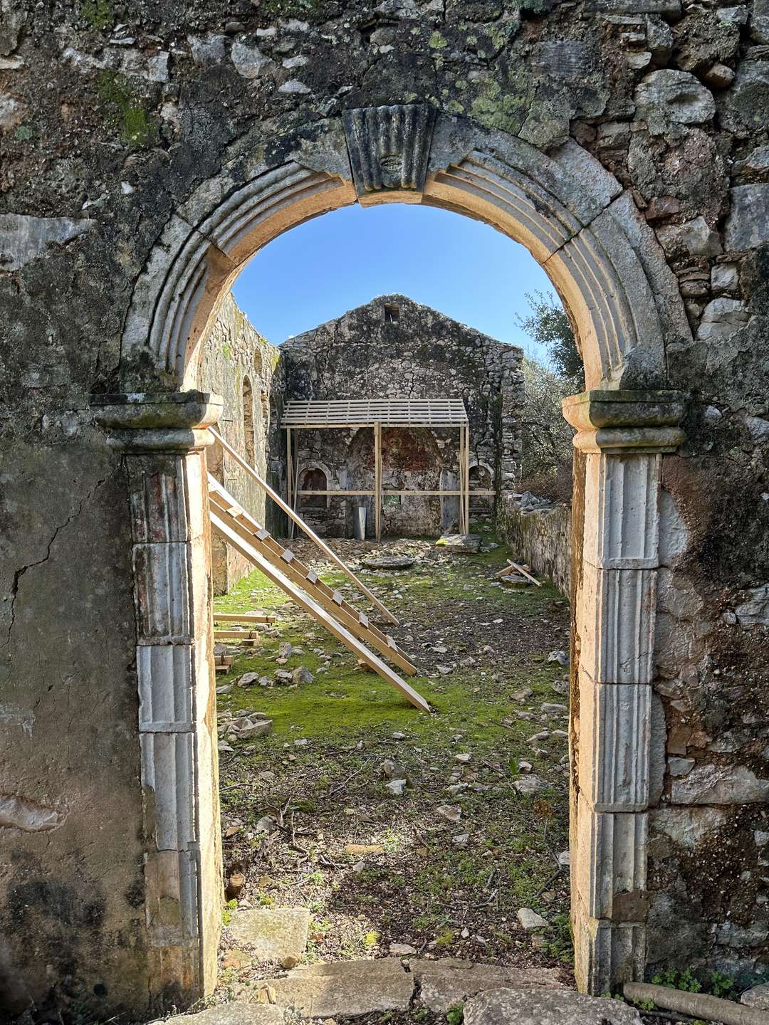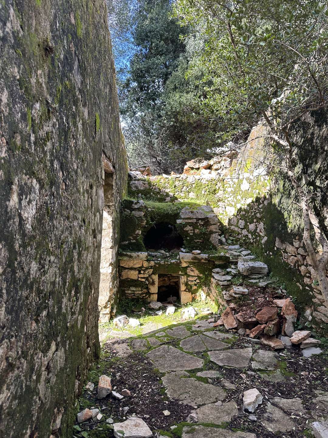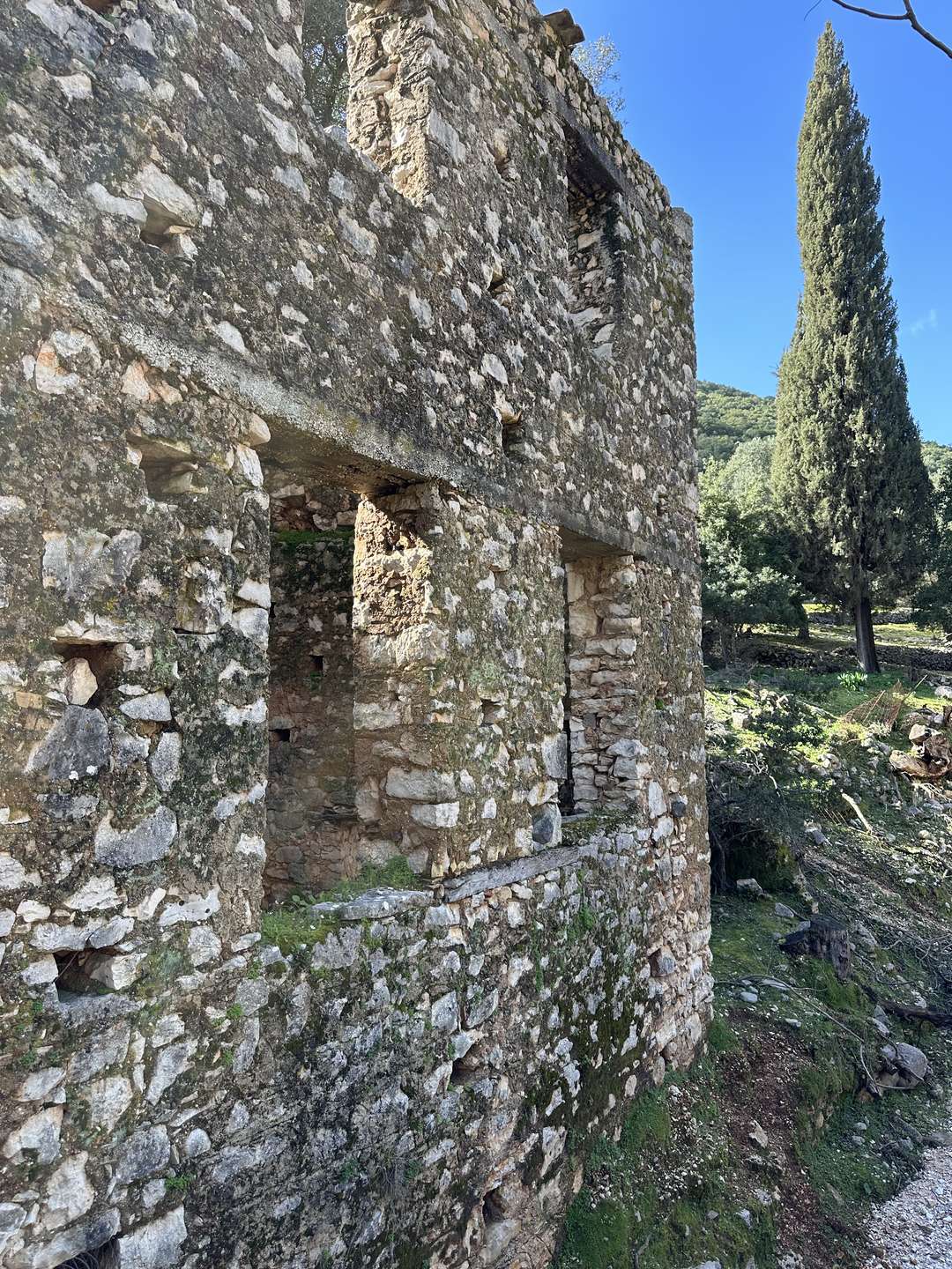 Nature has gradually taken over the village. Trees and plants grow inside the houses, and vegetation surrounds the ruins, creating a quiet and atmospheric landscape. Walking through Old Vlachata offers a sense of calm, mixed with memory and history, as the village slowly blends into its natural environment.