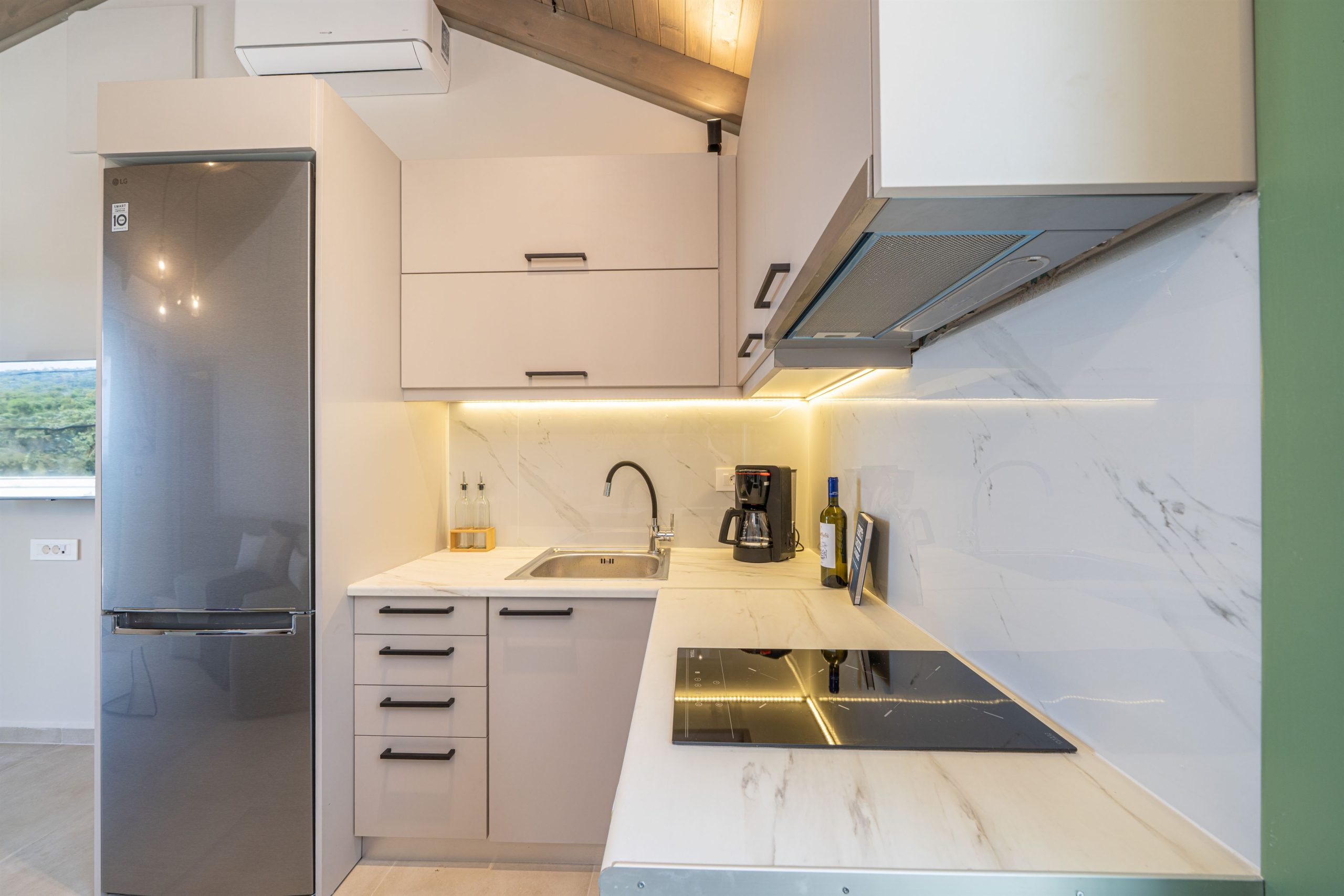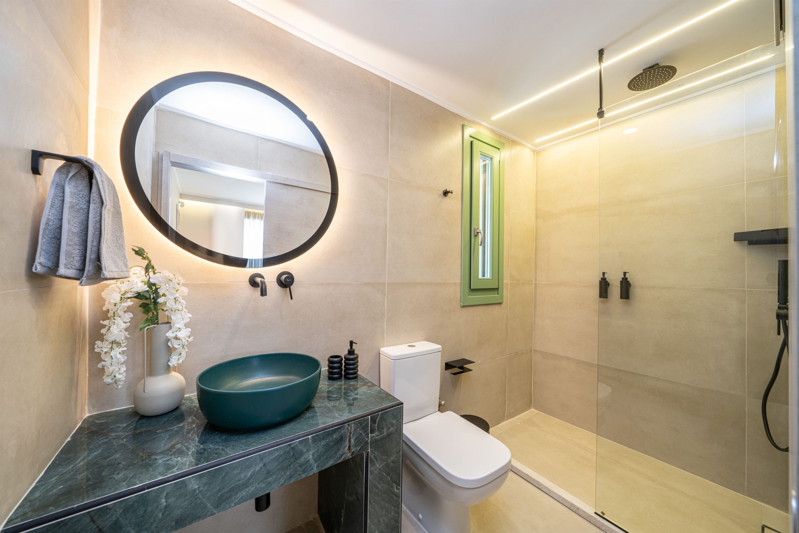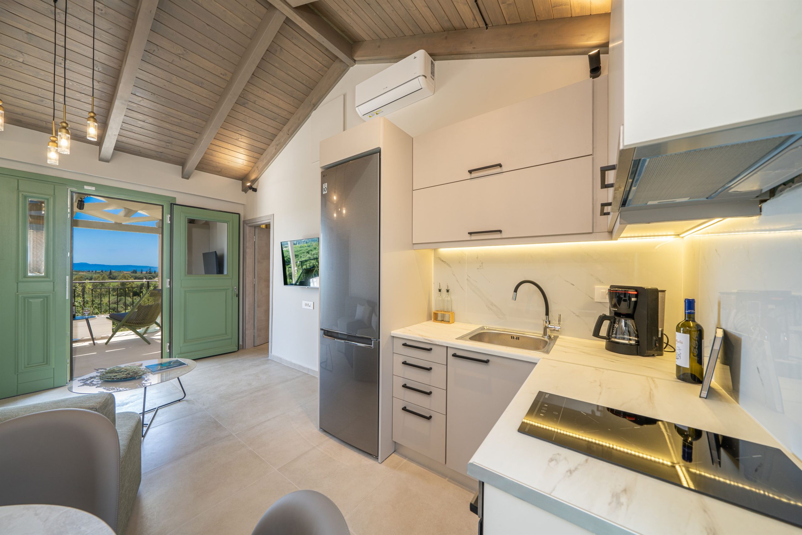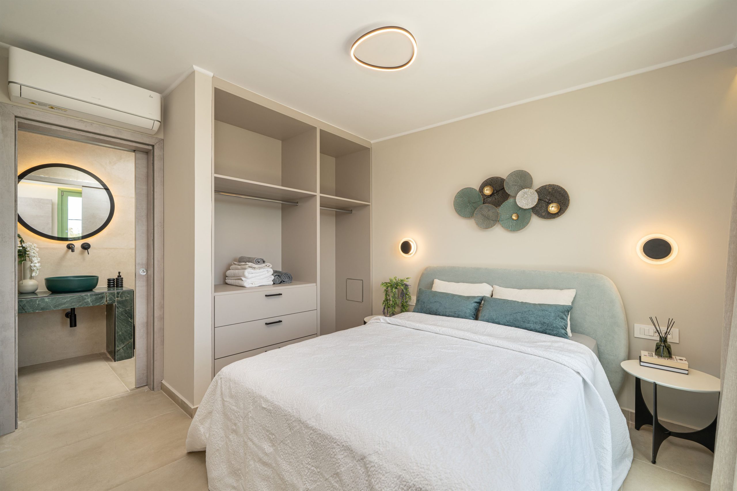 Comfort & Convenience: Two en-suite bedrooms, a fully equipped kitchen, cozy living area, A/C, flat-screen TVs, free Wi-Fi, and a private balcony with sea views.