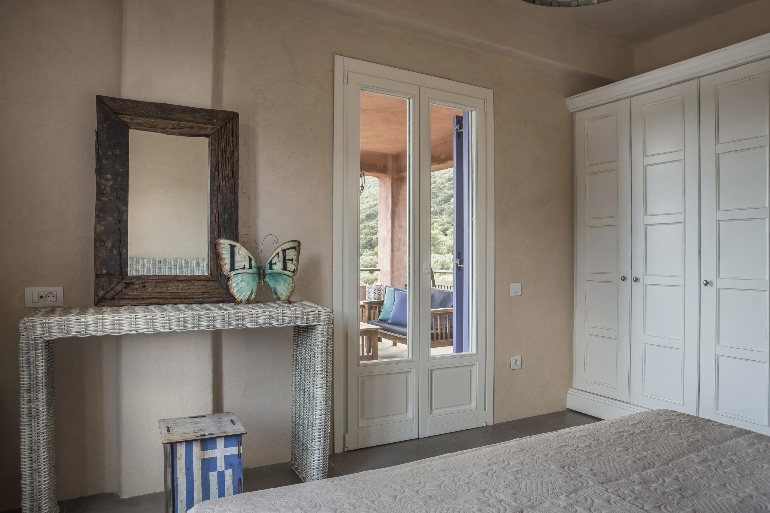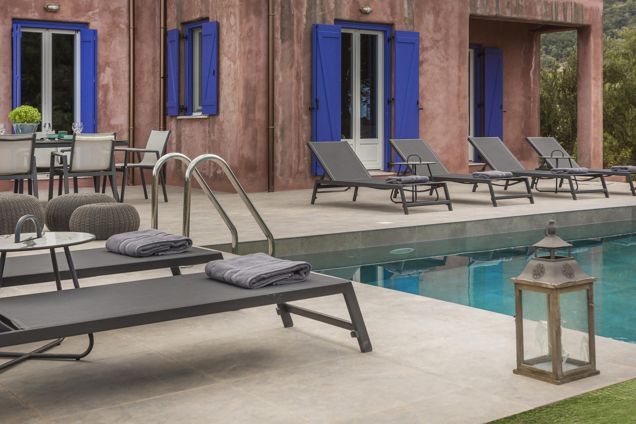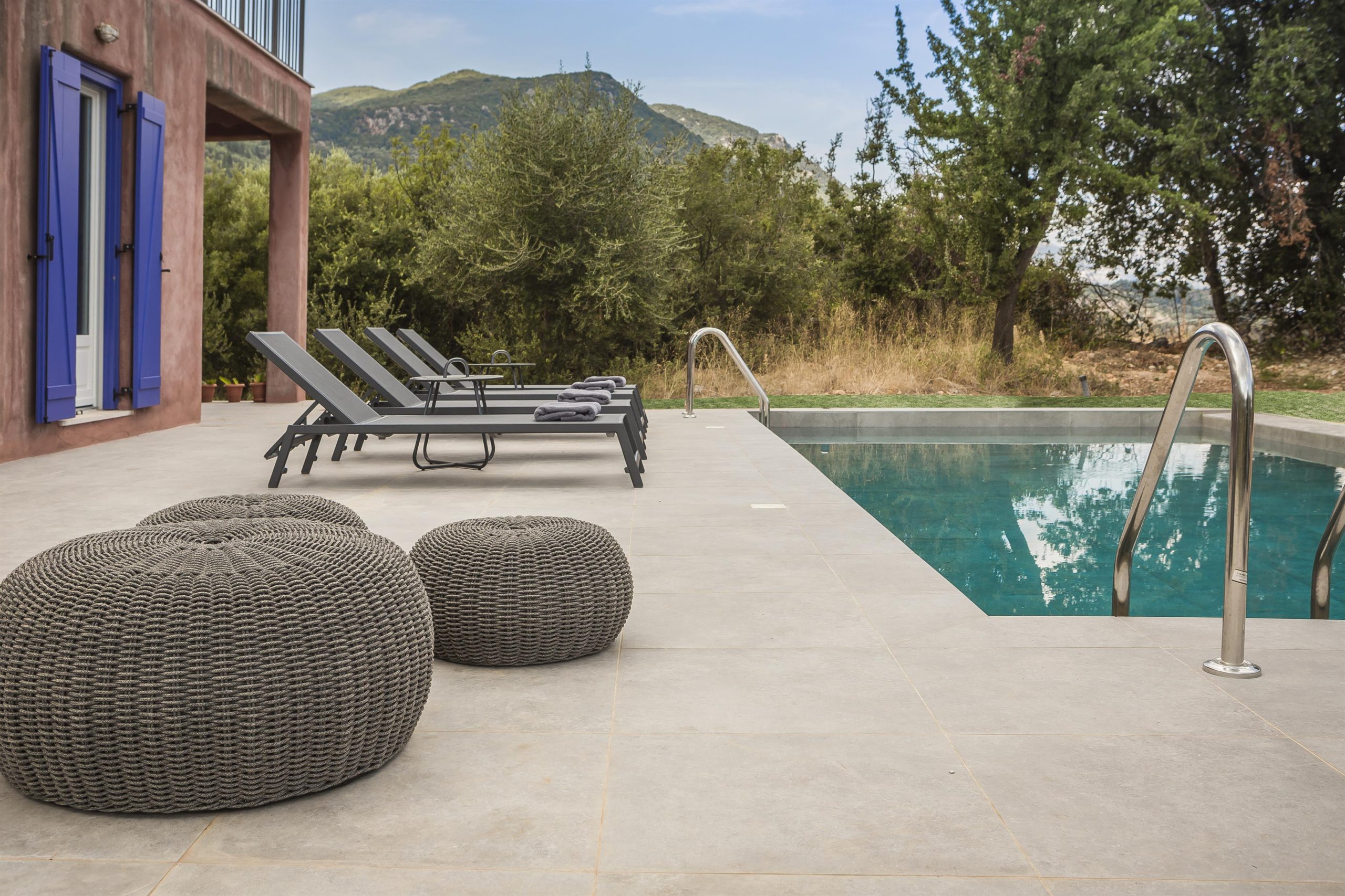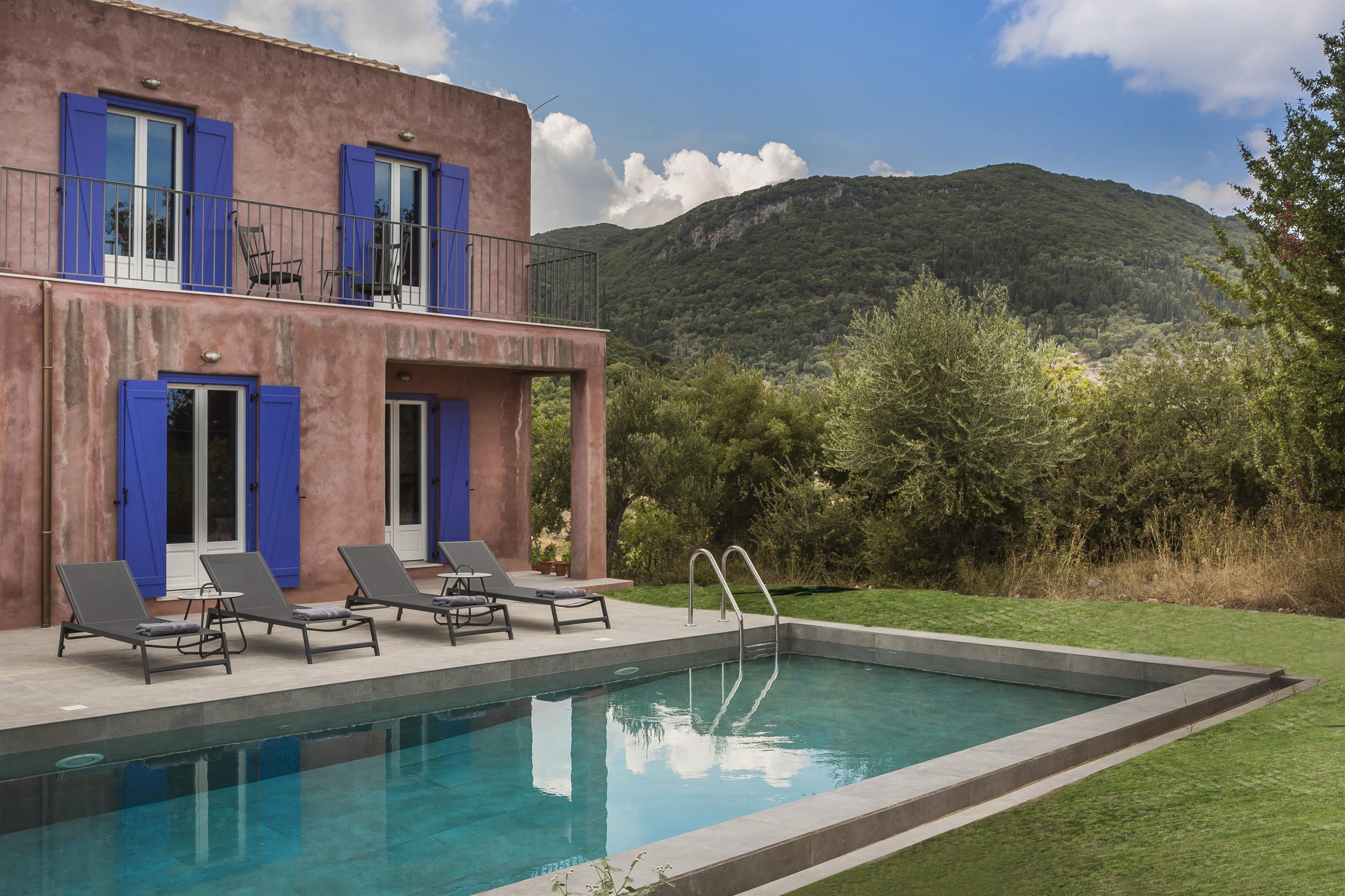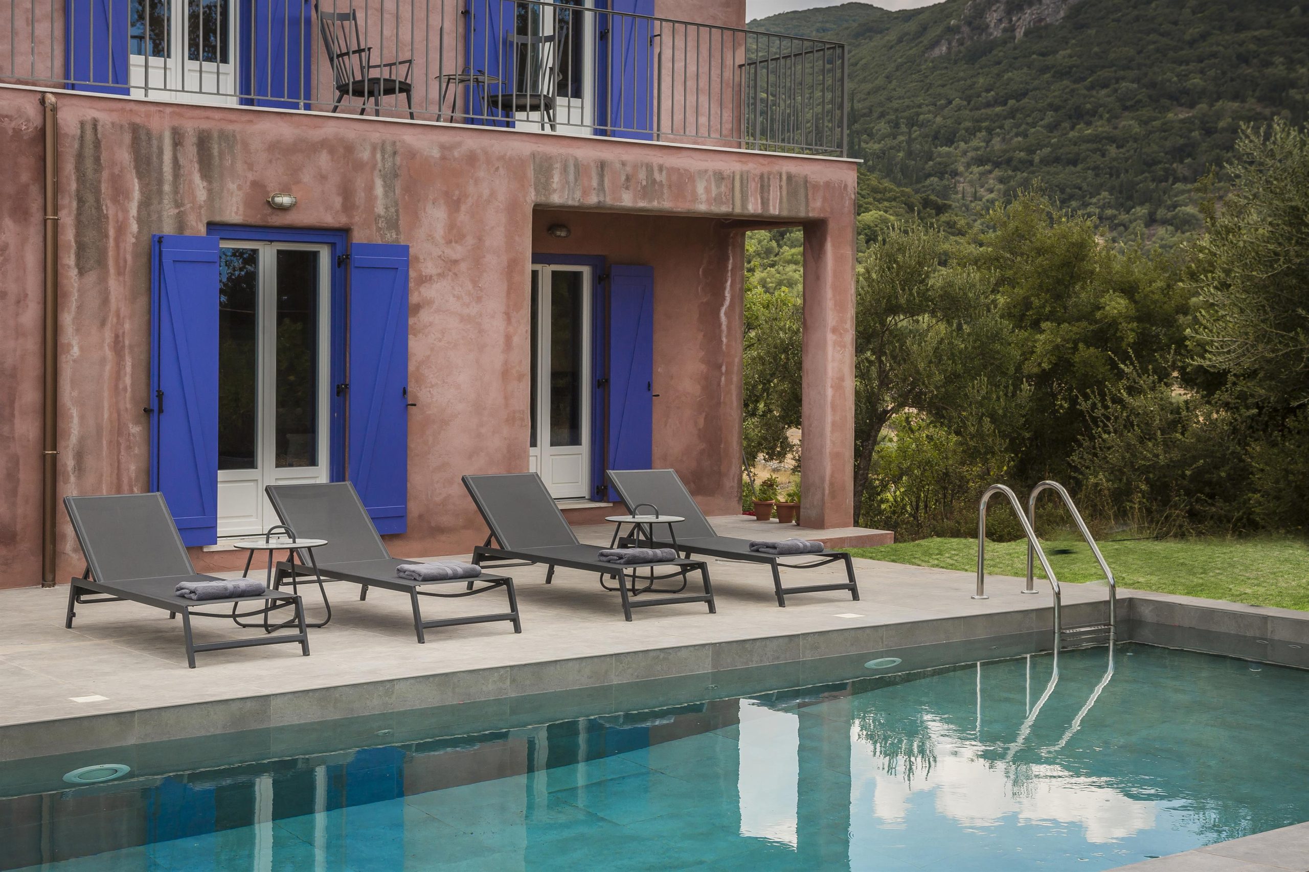 Tranquility, vibrant colors and stunning views make up the very essence of villa NADORIA. High on a hill, away from the noise of the town, villa NADORIA is perfectly integrated with the environment gazing both the friendly soothing mountains and the clear blue Ionian sea.